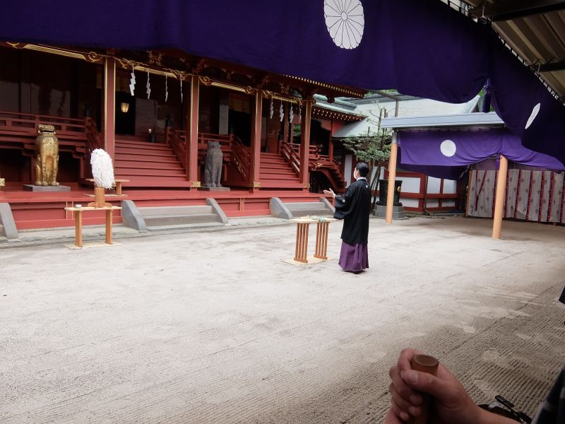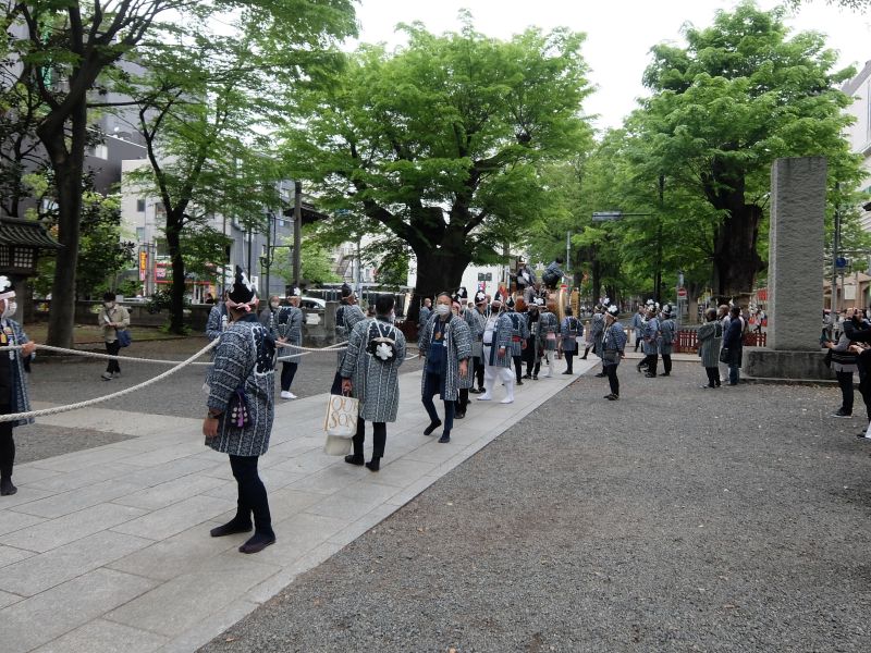 今回はいったん大鳥居まで引き出して、講中の手で送り込む形をとります。