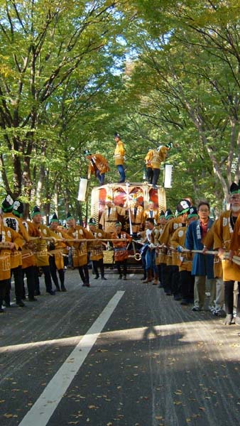 御本社の太鼓が欅並木を抜ける(t_fumi撮影)
