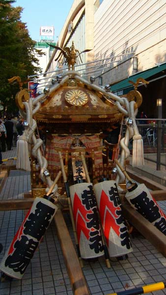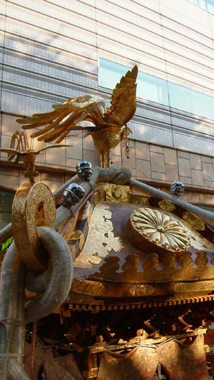 太鼓パレードの間飾られている旧御本社神輿。