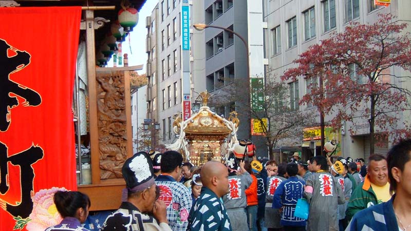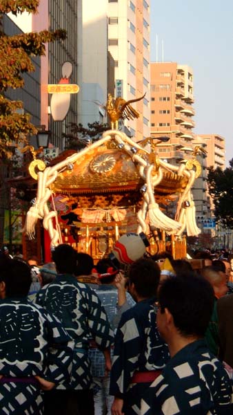 本町の山車が神戸の町並みに入ってきている。
