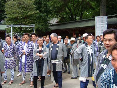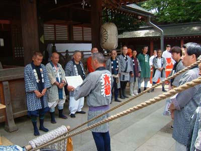 拝殿前でお祓いを待つ。