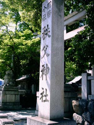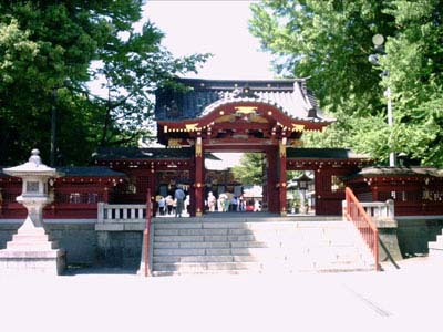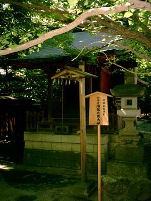 柵と一体化した鳥居。入って左が手水舎。奥は神楽殿。