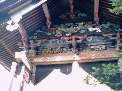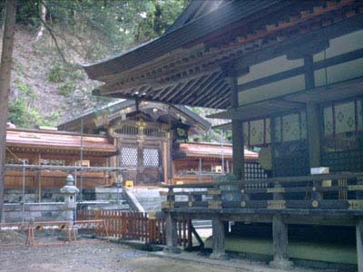 本殿はない。写真は拝殿の後ろの祝詞屋である。屋根の葺き替え中?