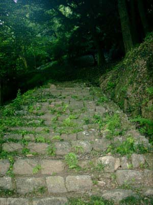 まっすぐ行く方が、昔からの参道だろう。古びた階段だ。歩きづらい。