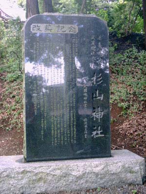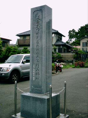 社碑からして「延喜式内社 武藏総社六之宮 杉山神社」と、社号の杉山神社よりそれ以外の部分が多い。