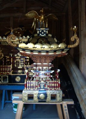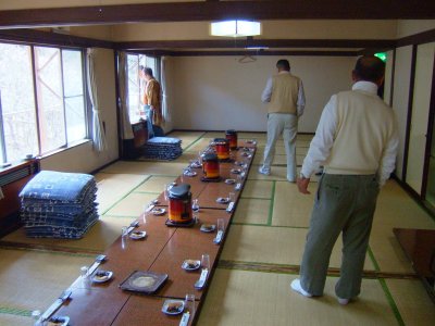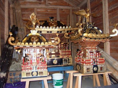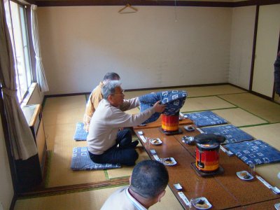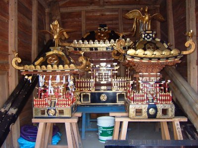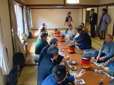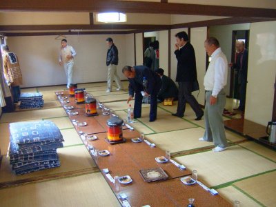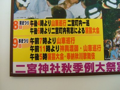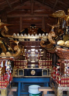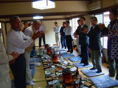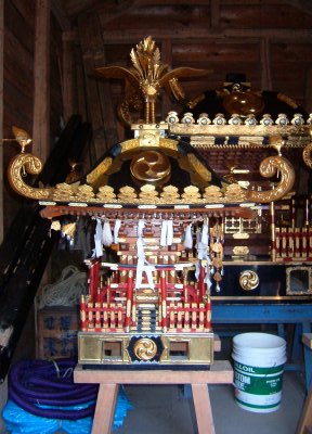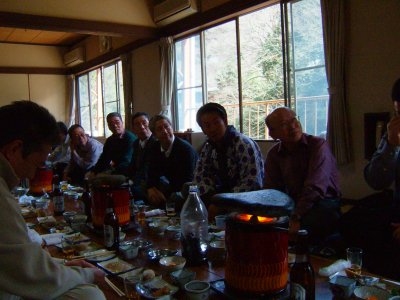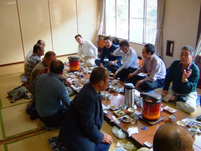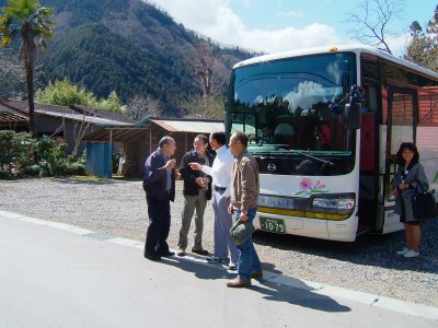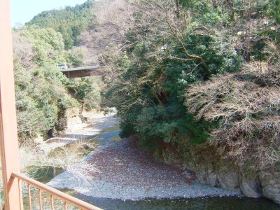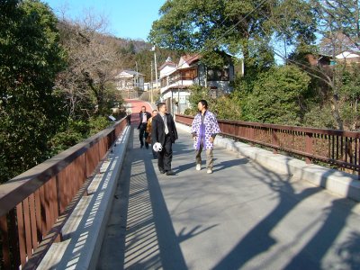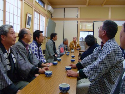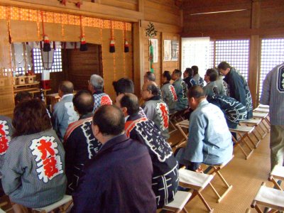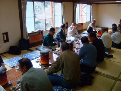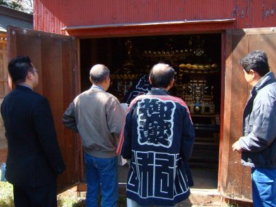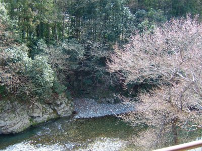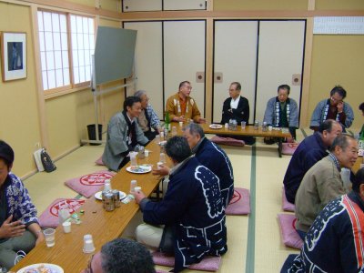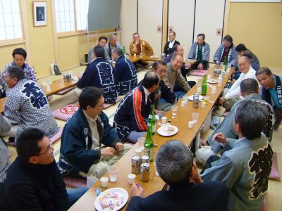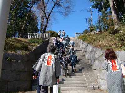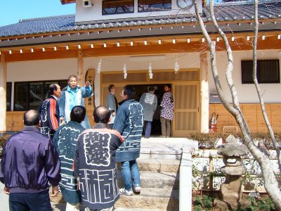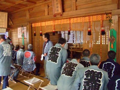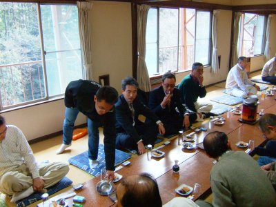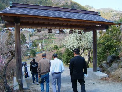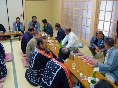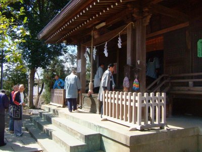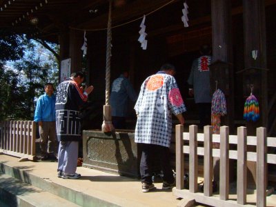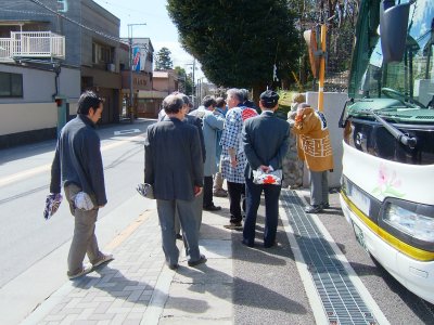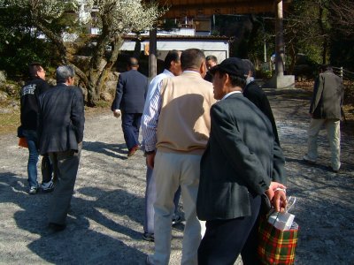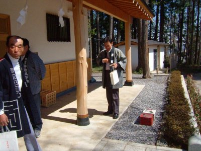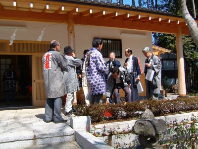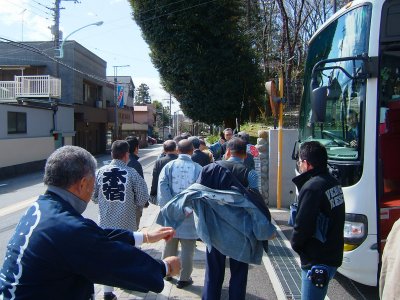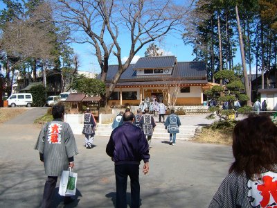2006年3月19日。快晴。大国魂神社からバスに乗り、あきる野市へ向かう。 予想より道路は空いていて、あっという間にあきる野市にはいる。 そして、ほどなく二宮神社に到着。バスから降りる。 急な階段をあがってゆく。 社務所にお邪魔する。二宮神社の氏子の方が接待してくださる。 社務所でお茶をご馳走になる。 以前来たときと違い、社務所が建て替えられていた。 非常に立派な建物だ。 二宮神社の例大祭ポスター。毎年9月9日に行われる。 生姜祭りといって、たいそうな賑わいだそうだ。 神輿を揉むときが独特だそうで、ウサギ跳びをするようにして揉むのだという。 また、拝殿までのあの急な階段を、神輿を引きずり上げるようにして宮入りするという。 今回は正式参拝と言うことで、拝殿への昇殿参拝を許された。 拝殿にて、祝詞奏上の後で代表が神前に玉串を捧げる。 御神酒を頂いて退出。 記念撮影。 再び社務所にお邪魔させていただき、お酒を振る舞っていただいた。 地酒を頂き、これが実に美味しい。非常にお世話になりました。 和やかな談笑風景。 いったん締めて、付近を各自散策。 神輿庫を開けてくださり、お神輿を見ることが出来た。 この二基の神輿は手作りだとのこと。 とてもそうは見えなかった。 奥の神輿も、とても立派だ。 このほか、仮屋台と本屋台が一台づつあり、本屋台の小屋はまた別の所にあるという。 秋のお祭りは是非一度見てみたい。 さて、再びバスに乗って・・・ ここは光明山荘。 渓谷のほとりである。 門をくぐって中へと。 ひなびた感じがする。 窓からの景色。 ここはお風呂もあるのだが、大部分の人はお風呂には入らず部屋でくつろぐ。 料理が並べられ始める。 みんな揃って、宴会が始まる。 和やかな雰囲気。 手締めでひきあげる。 良い気持ちで外に出て。 梅がきれいに咲いている。 のんびりとした1日で、こういうのも良いですね。 近くの民家。 さて、帰りましょう。