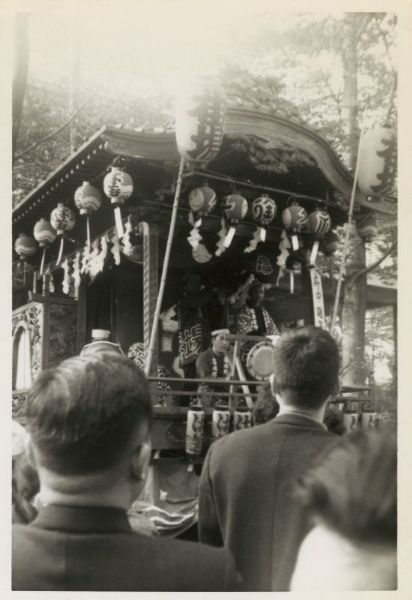 明治5年頃製作 現在の山車の昭和58年の改修前の写真である。この山車は番場町としては三代目。 初代 二代目 三代目(昭和58年 改修後) この山車が番場にきたいきさつは面白い物で、昭和39年に立川の砂川九番のガソリンスタンドの近くに、売り札をつけて置いてあったという。 持ち主は曙町で、山車小屋の地所が売りに出されたため、売却されることになったようだ。 当時25万円で売りに出ており、これを囃子のテープを寄贈する条件に22万5千円に値切って買った。 この交渉などは、当時の青年だった中村登氏が行っており、それも町内に話をせず、独断で借金をして買ったという。 この山車の売却話は、いくつかの市町村ではすでに流布されており、いくつかの引取りの話はあった。 府中でも本町などに話がいっており、山車の下見をしに行ったというが、山車の構造を見て、長持ちしないだろうということで手を引いたという。 これらの引き合い話を聞いた中村氏はあわてて金策を行い、その目鼻がついたかどうかという状況で購入の約束をしたという。 当時、町内では山車の購入話を聞きいて慌てて会合を開いたが、その会合をしているとき、すでに山車は青年の手で購入が決められていた。 あわてて役員が現地に行くと、すでに山車の上で青年が囃子をやっており、先方の曙町の会長さんからは「ありがとうございます」とお礼を言われた。 それを聞き、町内の役員は呆れて引き上げてしまったそうだ。 その後、一晩かけて立川から引いてきたというが、この道中もなかなか大変だったようだ。 昭和58年の改修前、山車に彫刻を入れるためのホゾ穴などが施されていたが、彫刻が入っているべき部分に実際に彫り物が入っていない個所があった。 こうした部位には、改修時に彫刻を作成し、追加充填している。 元々、こうした部位に彫刻が入っていたものが何らかの理由で外されたものか、後から追加できるように処置していたものかは不明。 |