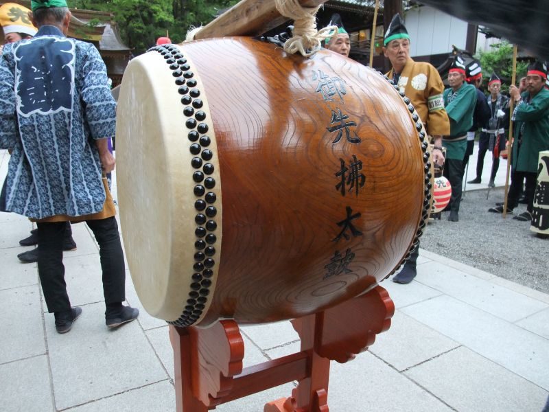 郷土の森に収蔵されている太鼓の、さらに前の太鼓だという。担いで巡幸するサイズの太鼓である。
