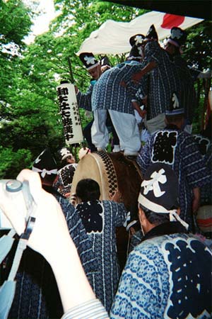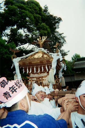 神輿の重みに耐える。腰を入れる。汗だくとなり、熱気で意識はもうろうとなる。