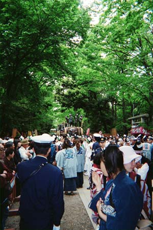 行列が進みはじめる。御本社の太鼓が随神門をくぐり抜けた。