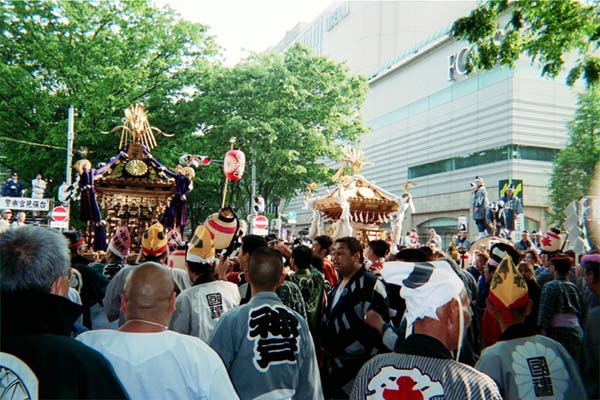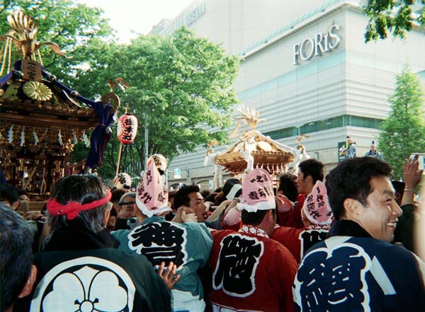 大鳥居前交差点で、御本社と一之宮を並べて揉む。
