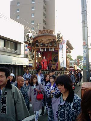 こちらは現役の番場青年。片町の山車と共に欅並木へゆくところ。