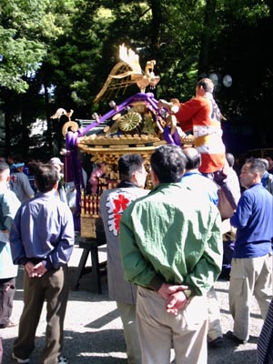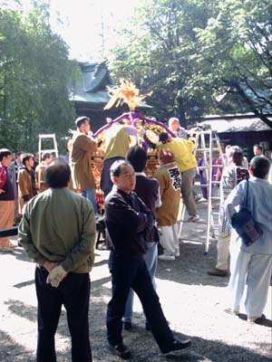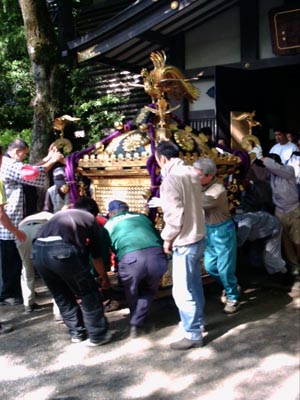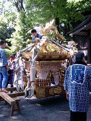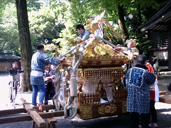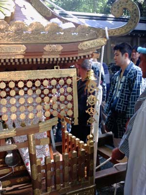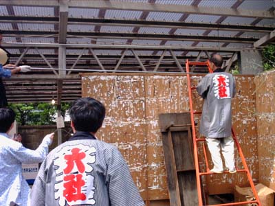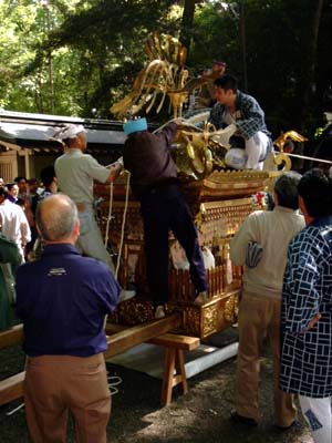 御本社の神輿の飾り付け。