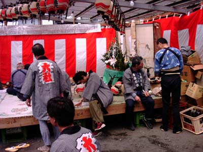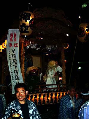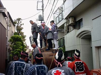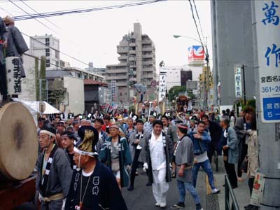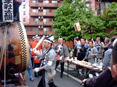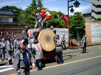 分倍河原駅前でUターンし、分倍河原の会所へ。会所のたびに太鼓は休憩し、飲み食いまた腰を据えて叩く。