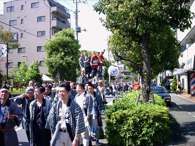 太鼓は屋敷分から裏通りを府中街道へ向かい、府中街道を北にゆく。そして南に戻り、番場三丁目へゆく。