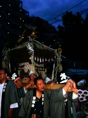 6日早朝、暗い最中を、御旅所を出た神輿は屋敷分に向かう。