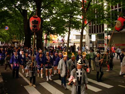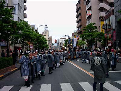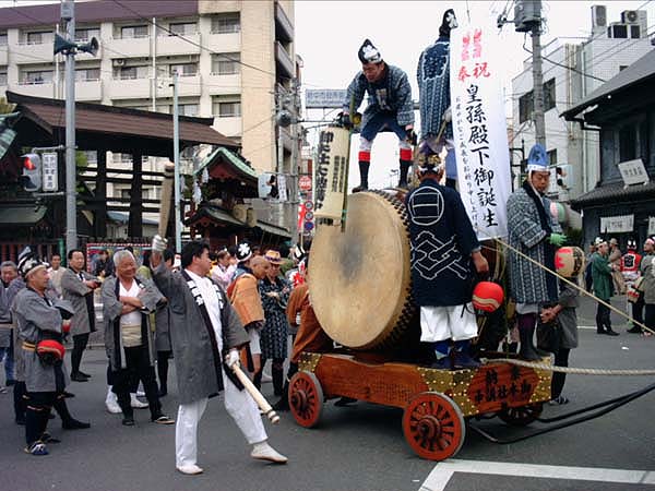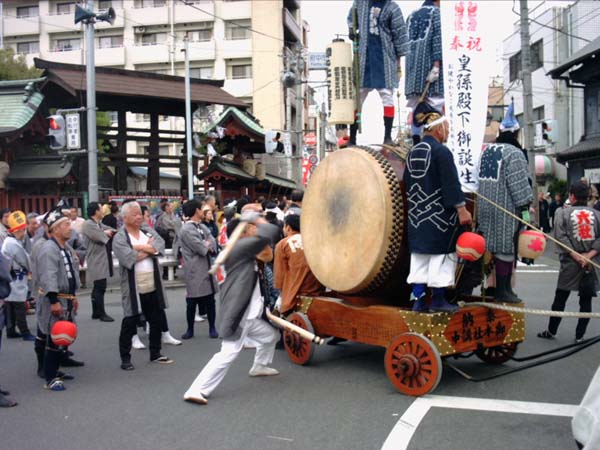 太鼓が神戸の町をゆく。
