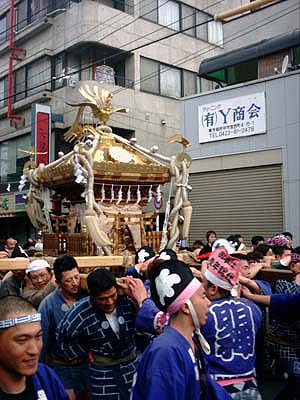 神戸を進む一之宮。神輿長も担ぐ。