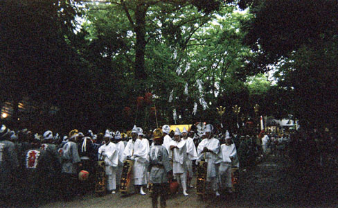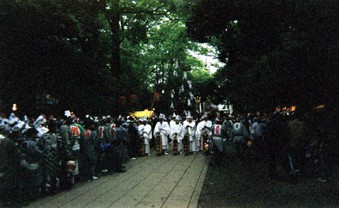 拝殿前を練る。