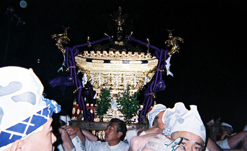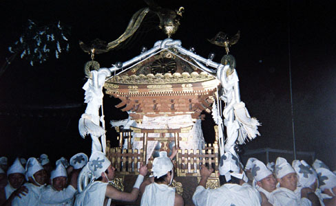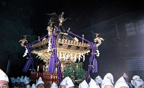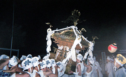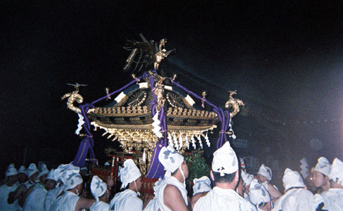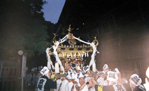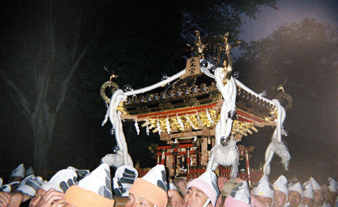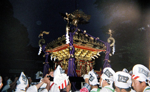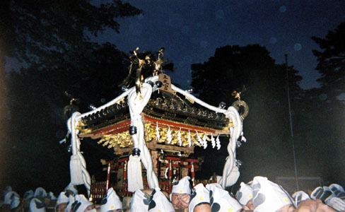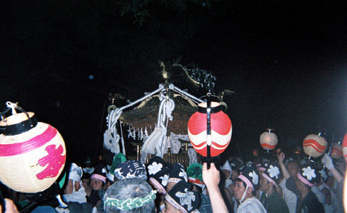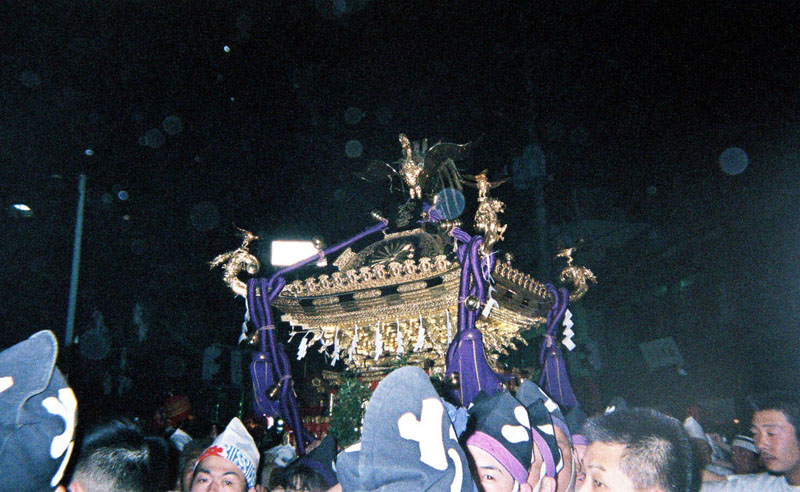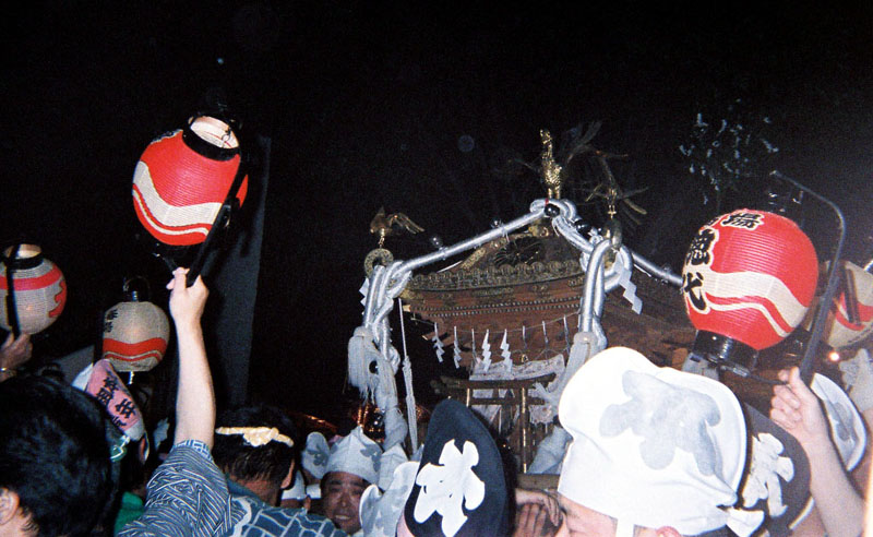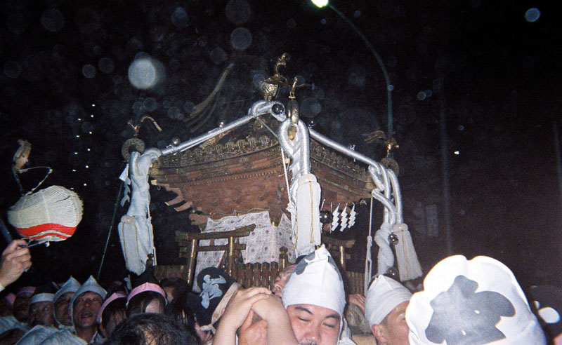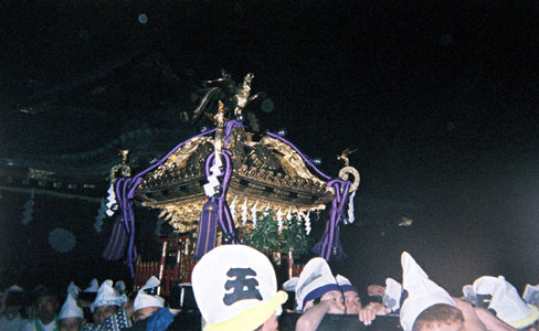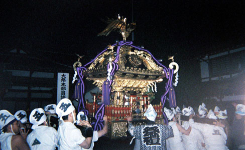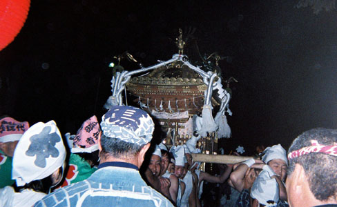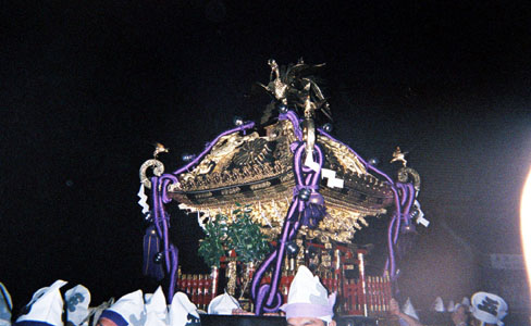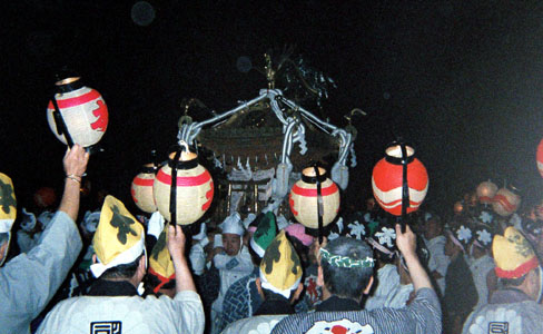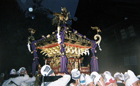 提灯の中で揺れる神輿。