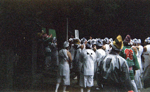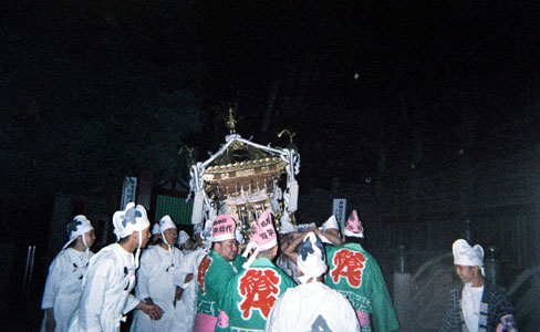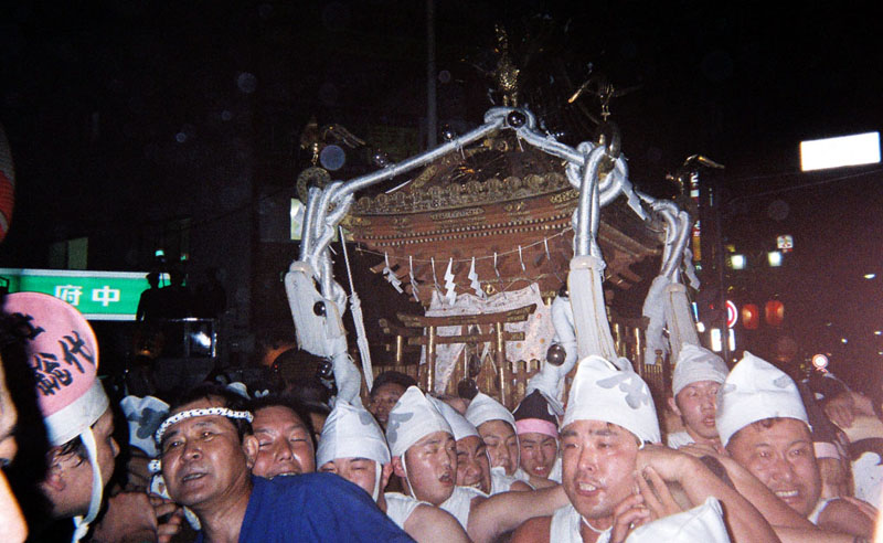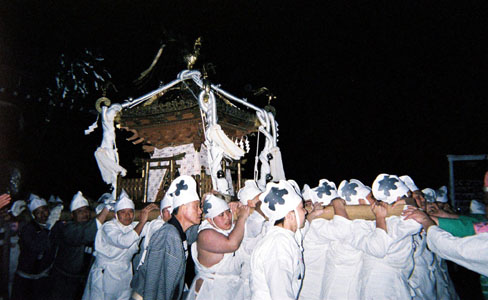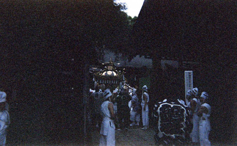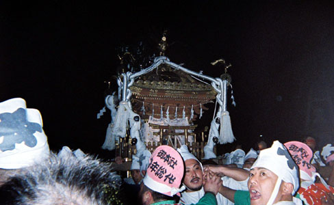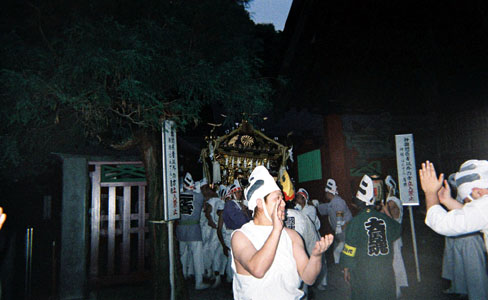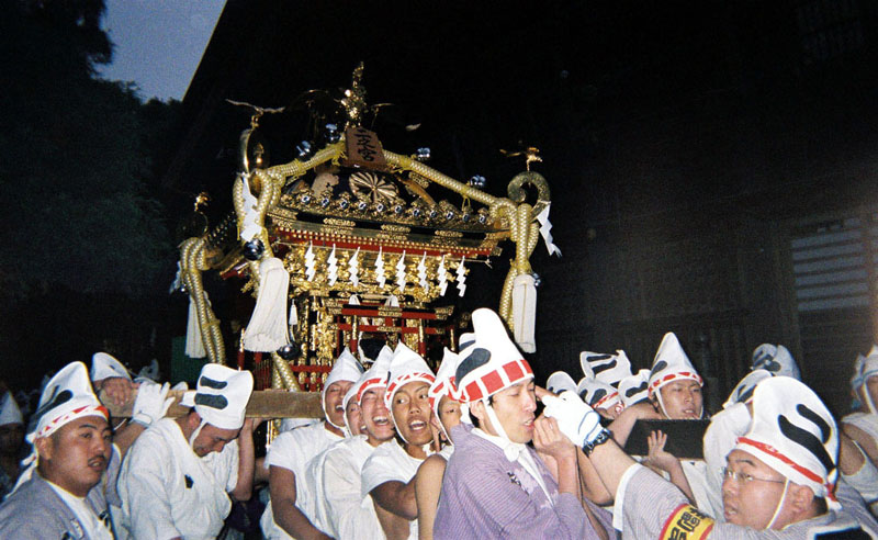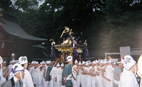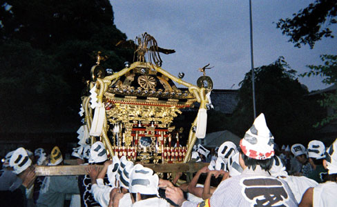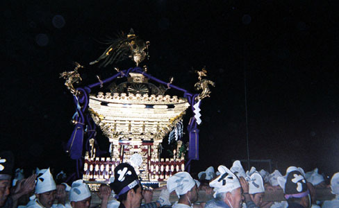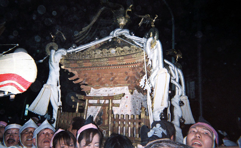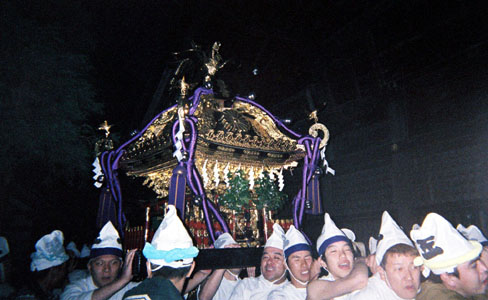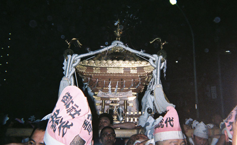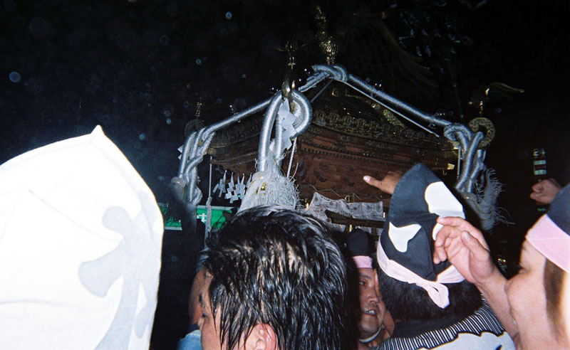 提灯の中で揺れる神輿。
