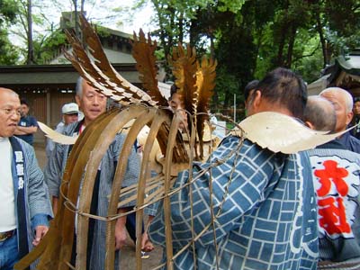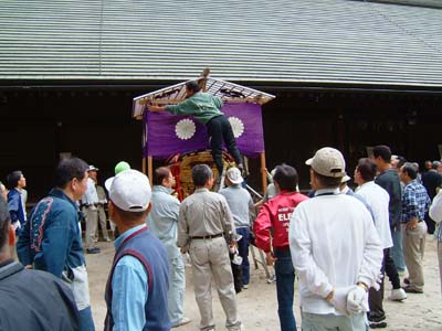 御霊宮(ごりょうぐう)が天棒を差し替え中。
