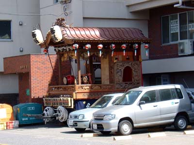 本町の山車も引き出されている。