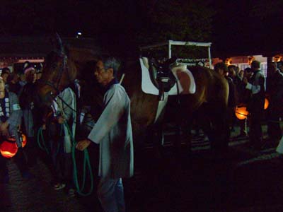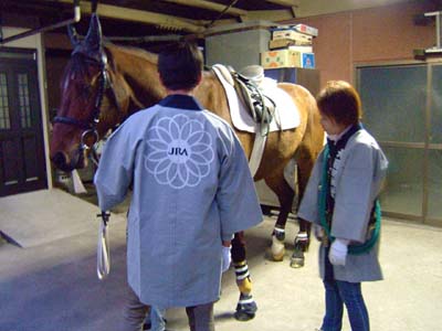 屋敷分の伊藤家で待つ馬。
