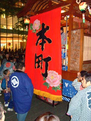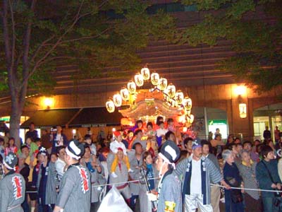山車が演奏をはじめる。左は寿町。