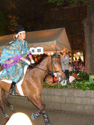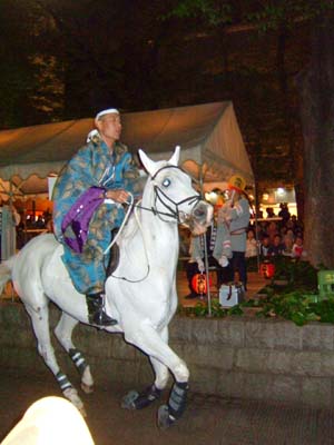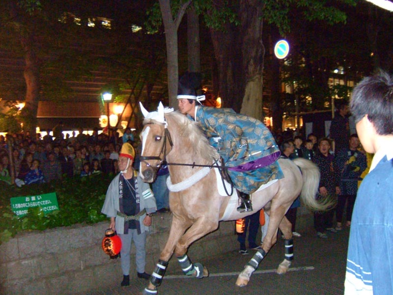 お駒の行列。屋敷分まで駒くらべに出す馬を迎えに行く。