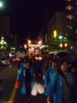 そろそろ夕方・・・片町の山車が欅並木へ向かう。
