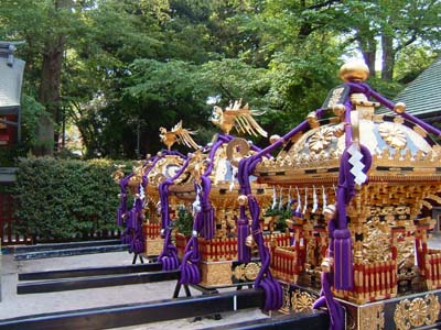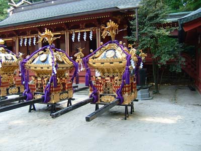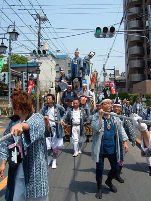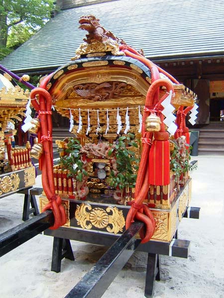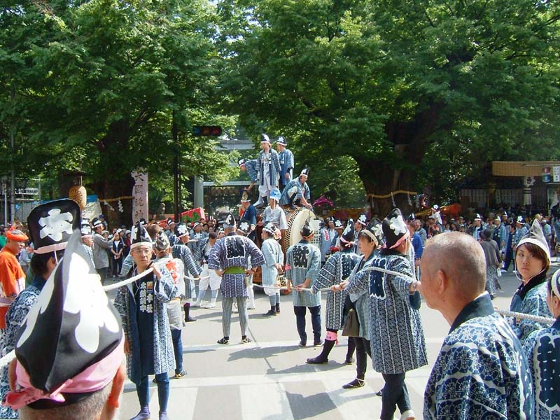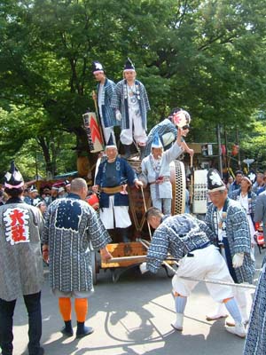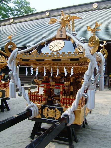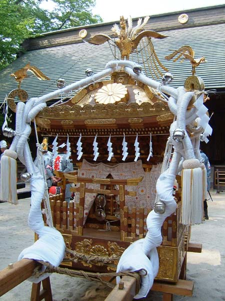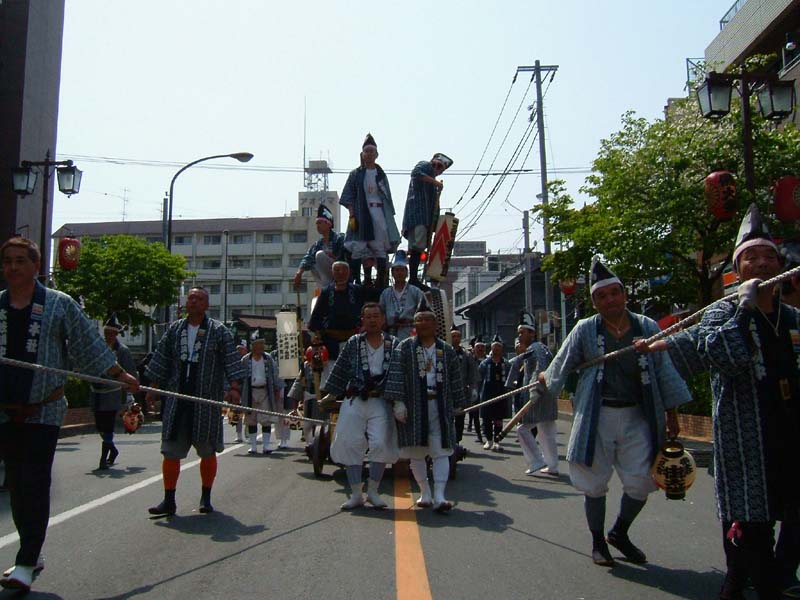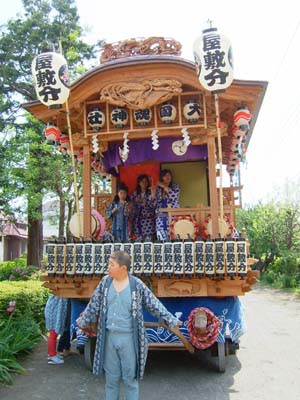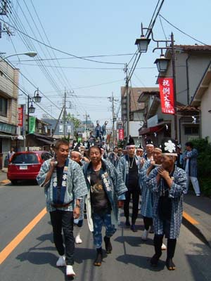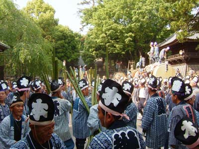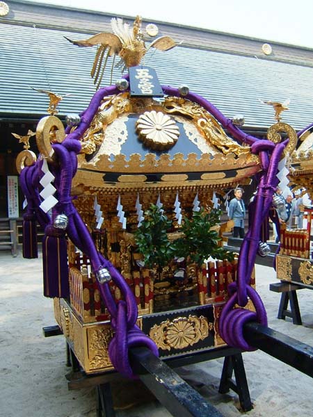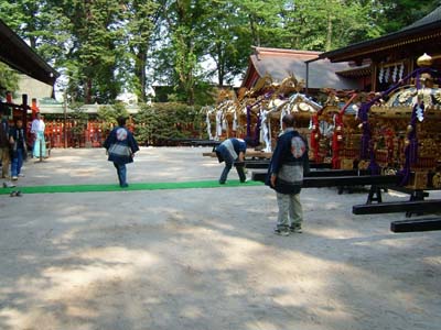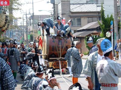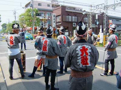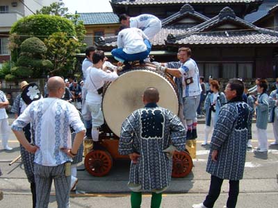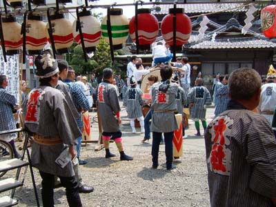 お宮の前。まだ片面打ちなので、片方は警固を降ろしている。