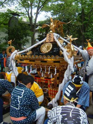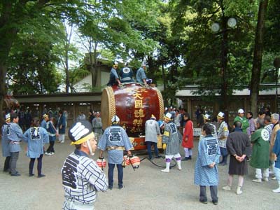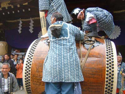 しばし時間が空き、三之宮の太皷がしまわれるところ。
