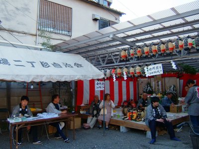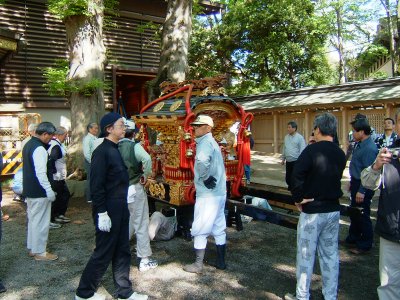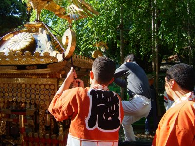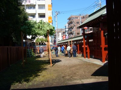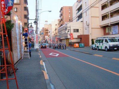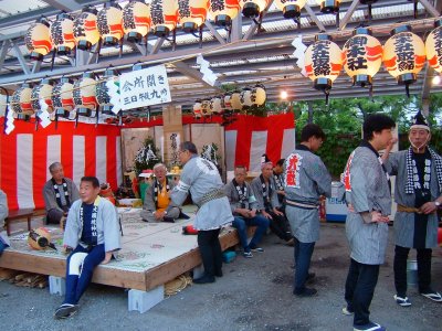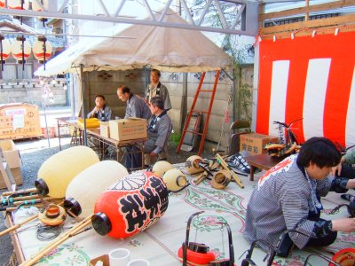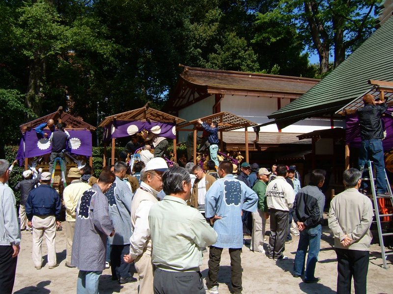 さてさて、町内に戻る途中。御旅所にて。こちらでも準備が進む。