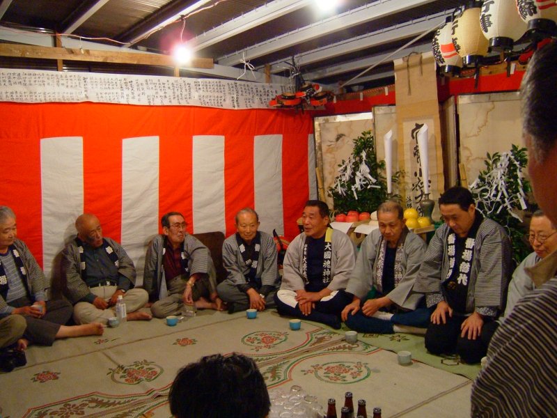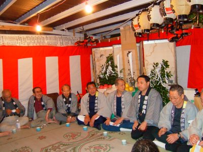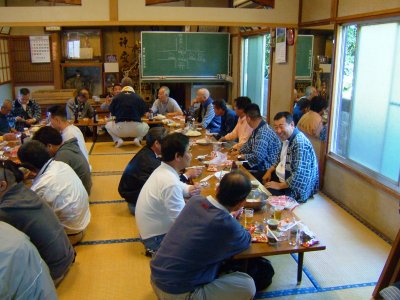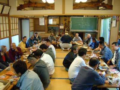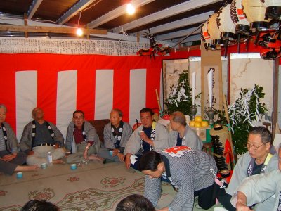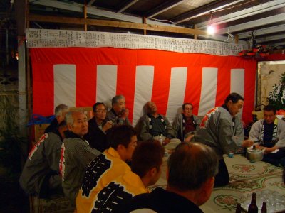 太鼓関係者接待。これが終わると昼食の後、関係者は会所設営。