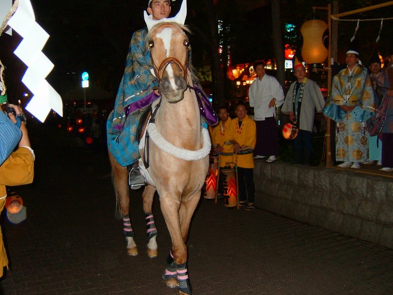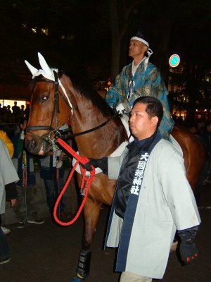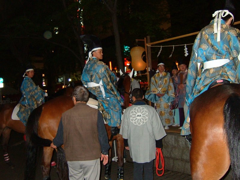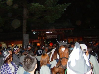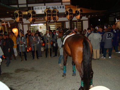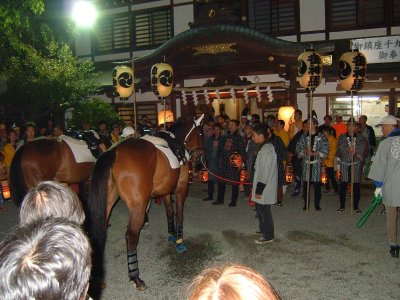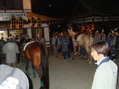 全ての馬が揃う。名対面の儀は御本社神輿長と一之宮神輿長が隔年交代で勤める。