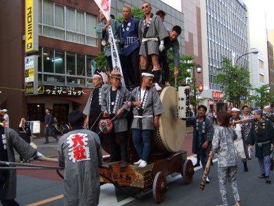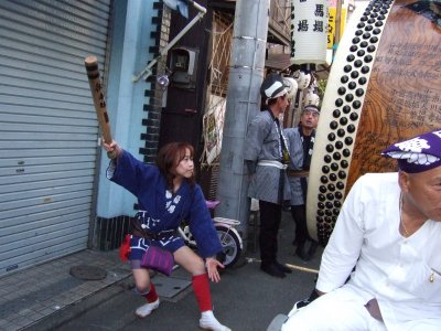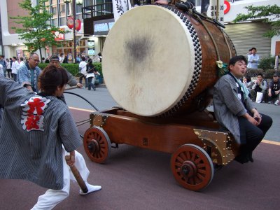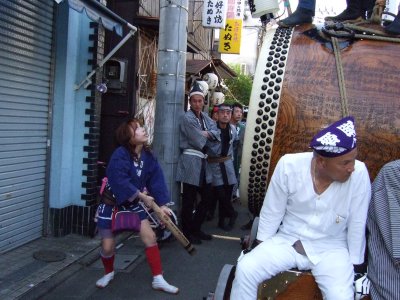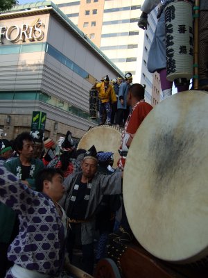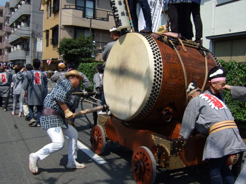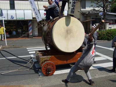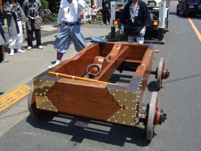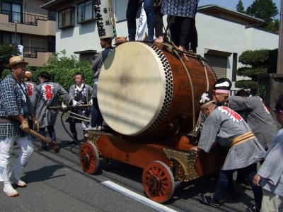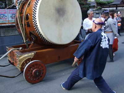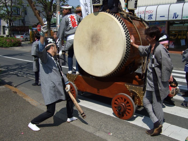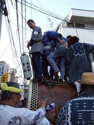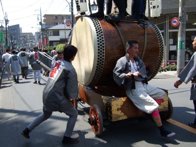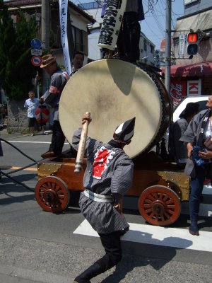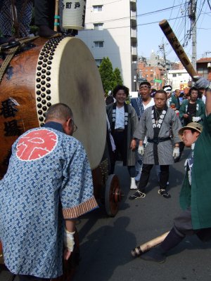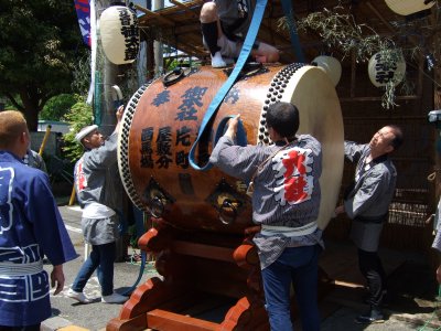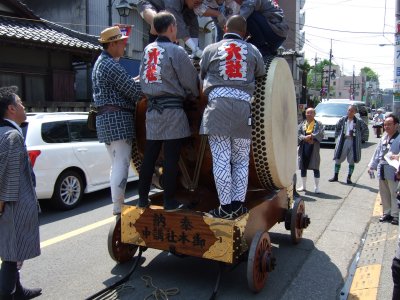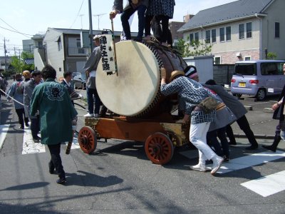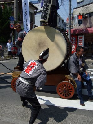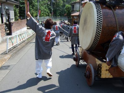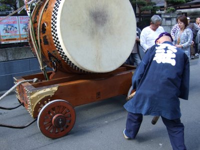 太鼓の町内廻りの準備。