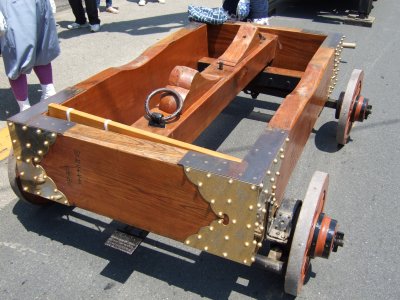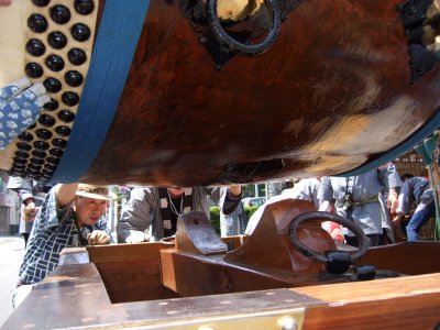 欅の山車がパレードの集合地点に向かう。