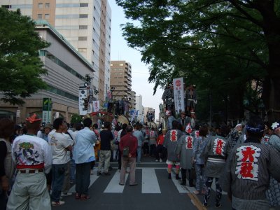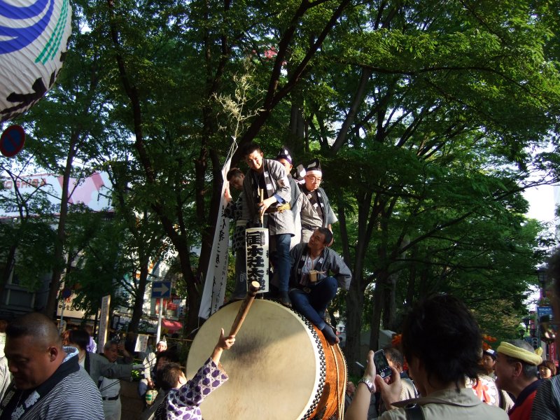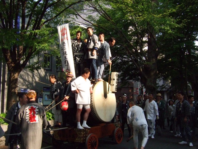 太鼓は、欅並木北端をUターンします。
