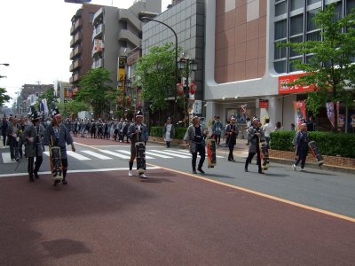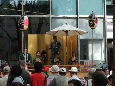 まもなく神社。フォーリス前では囃子の演奏。