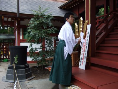 ササラがついて神社へ。