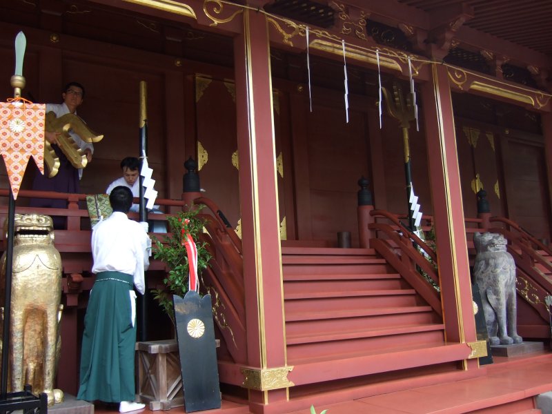 こちらも支度中。先駆の威儀物の準備。