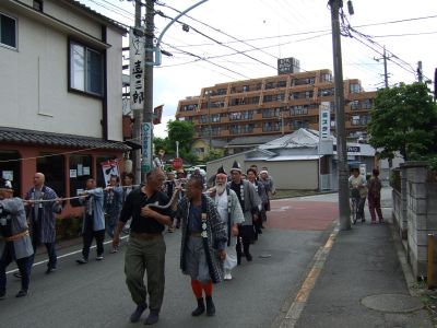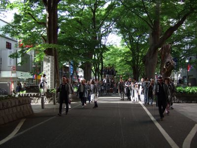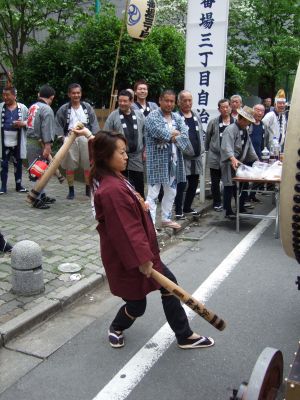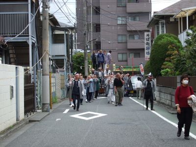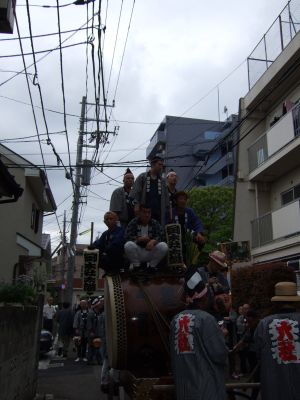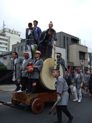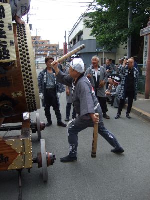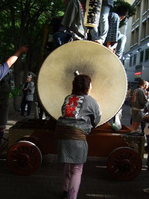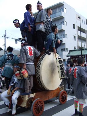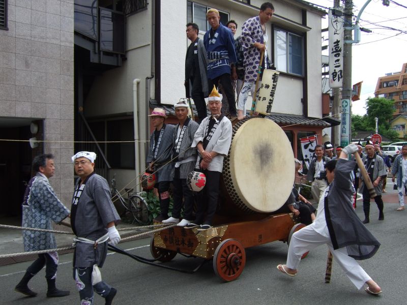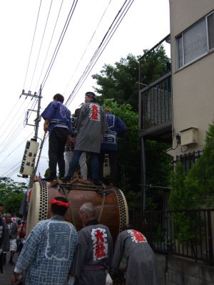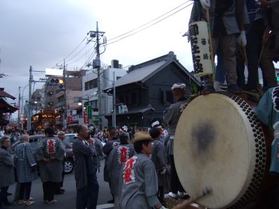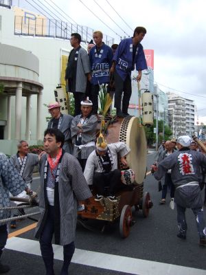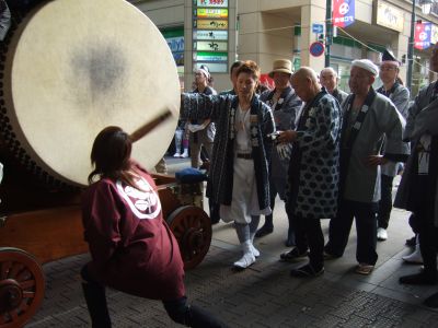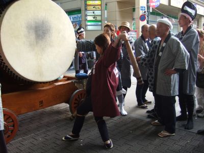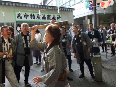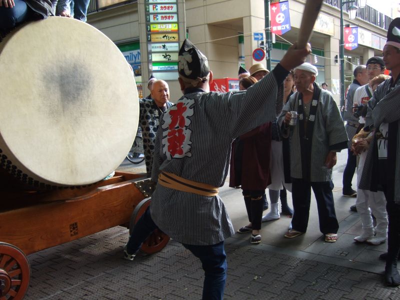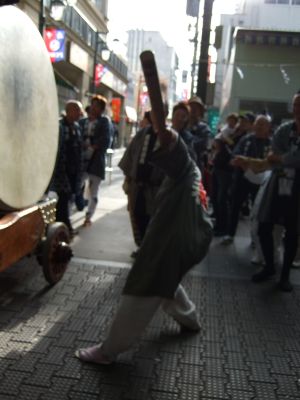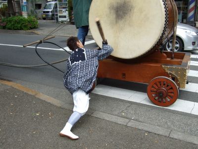 府中街道へ太鼓が出てくる。