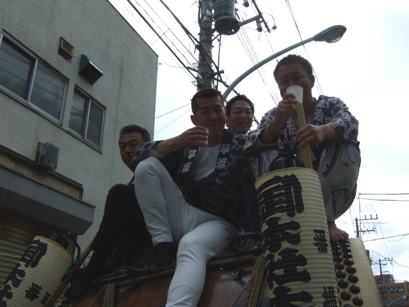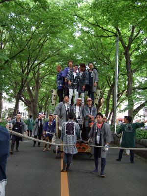 寿町の山車とすれ違い。欅並木北端でUターン。
