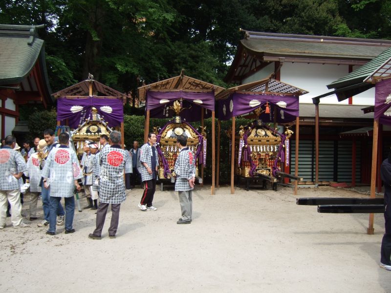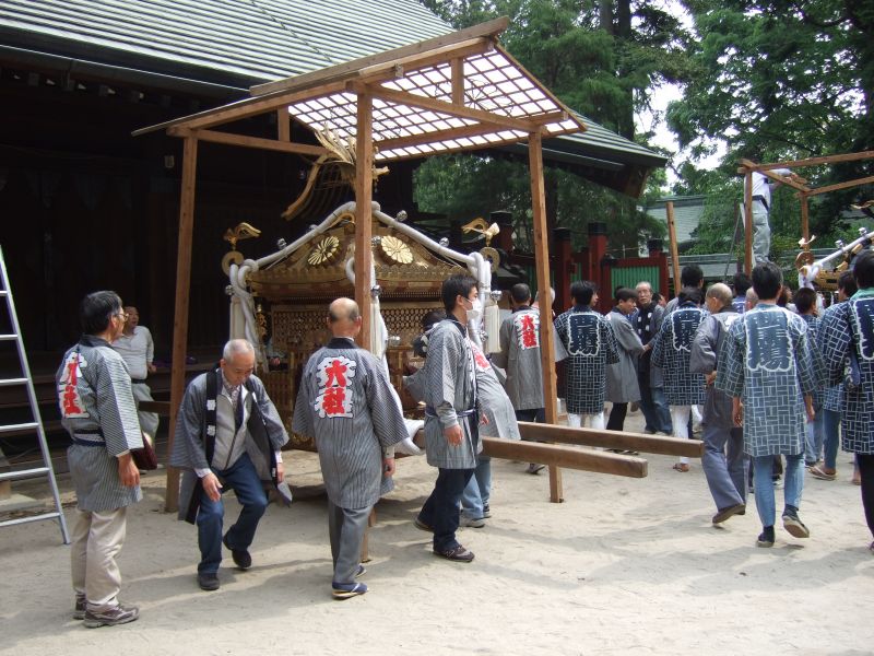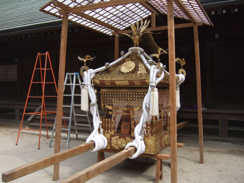 御本殿前に神輿を運びます。