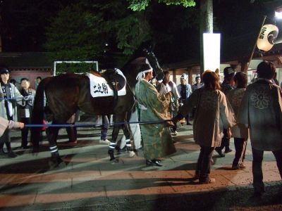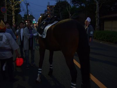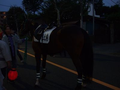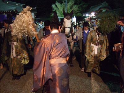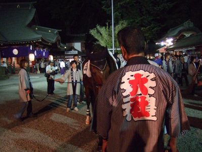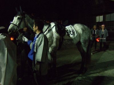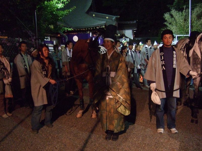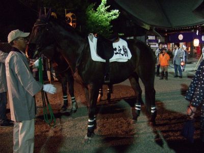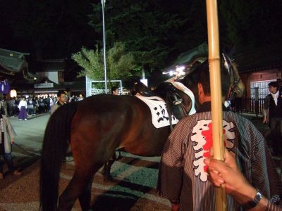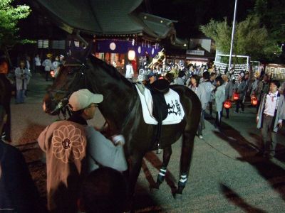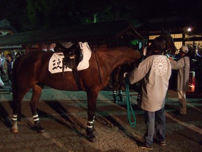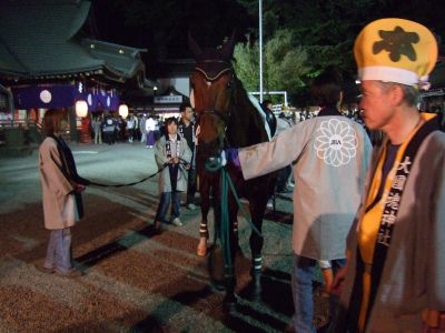 馬と共にお宮へ。