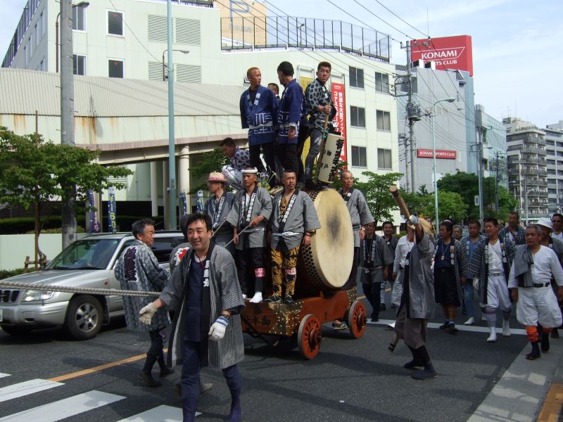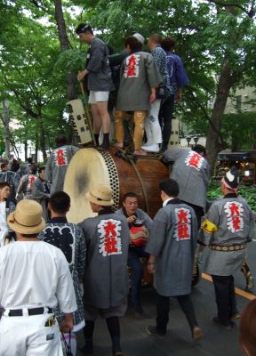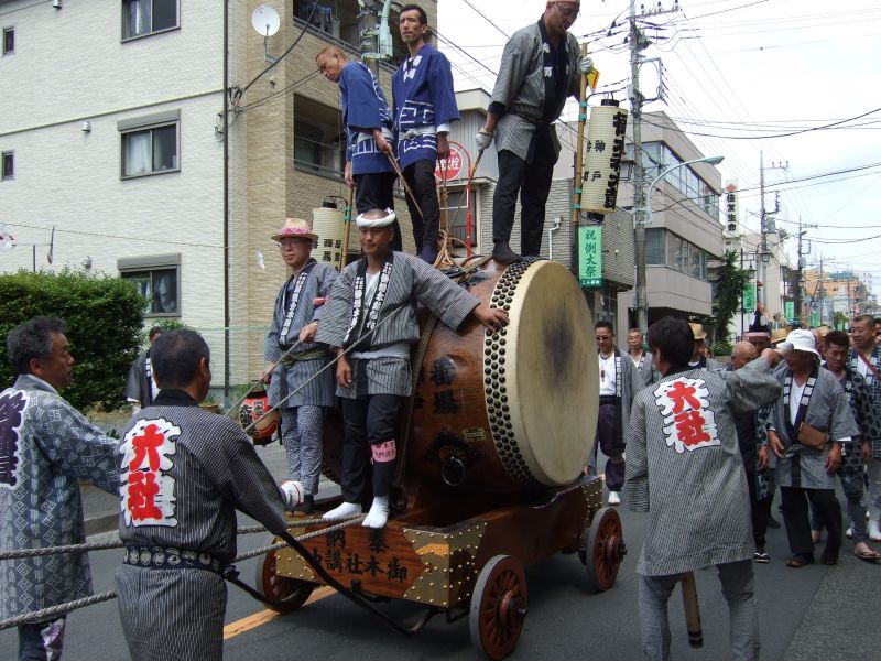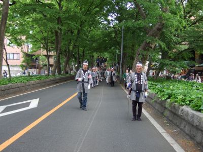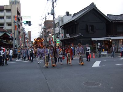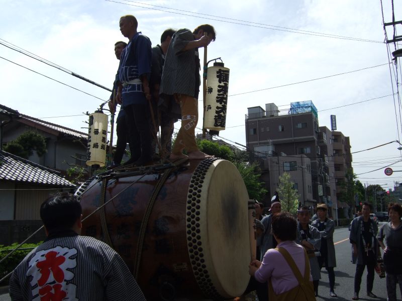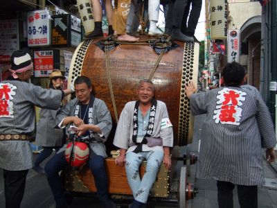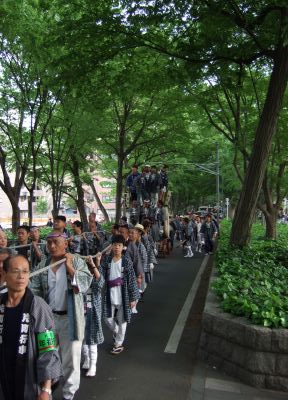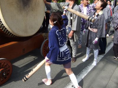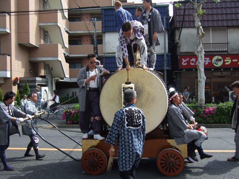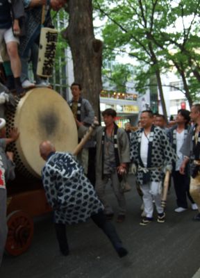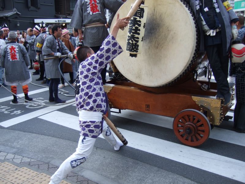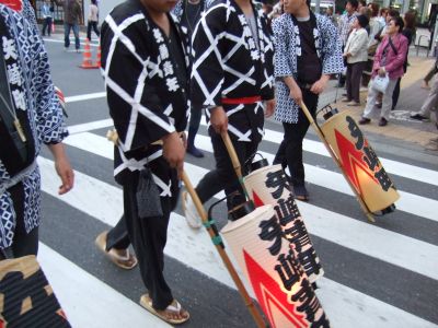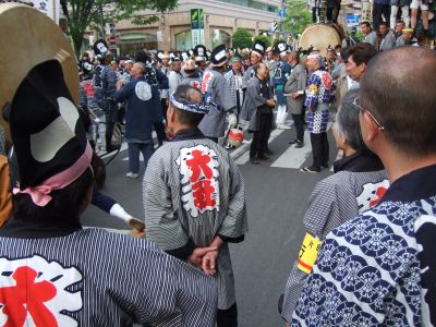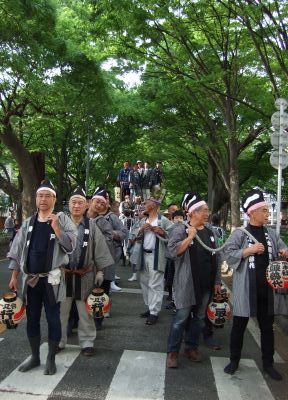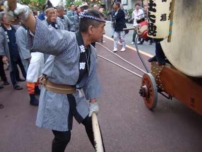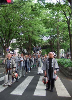 太鼓は欅並木へ。