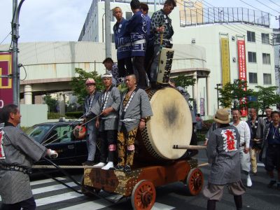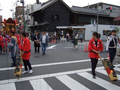 欅若連の山車が突っ切ってゆく。