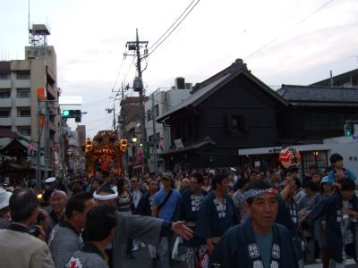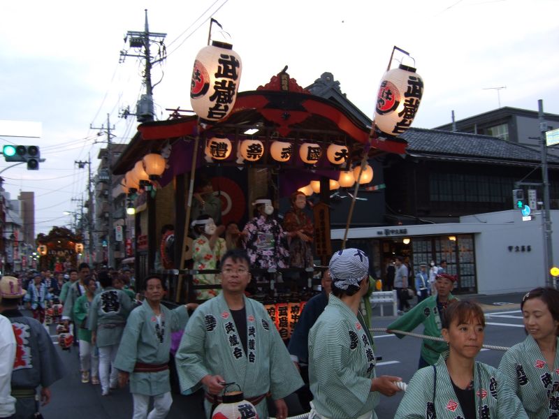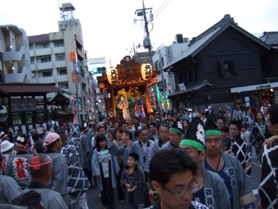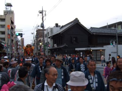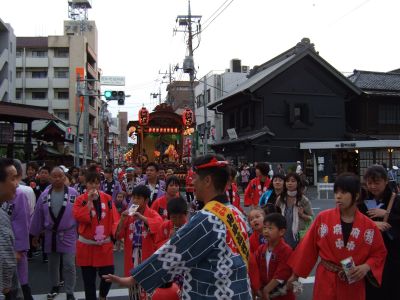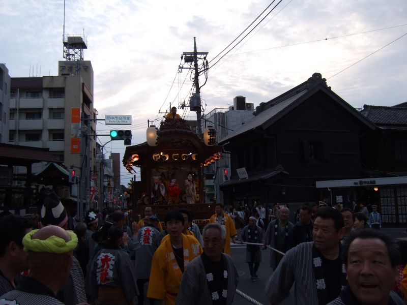 此処で午後6時。山車とすれ違う。