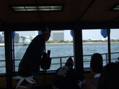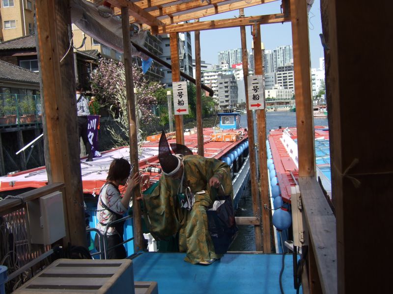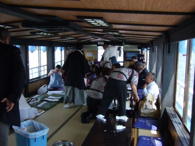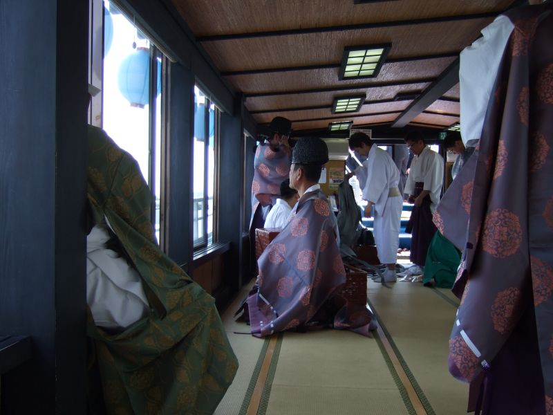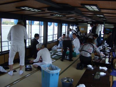 舟の中で着替え。